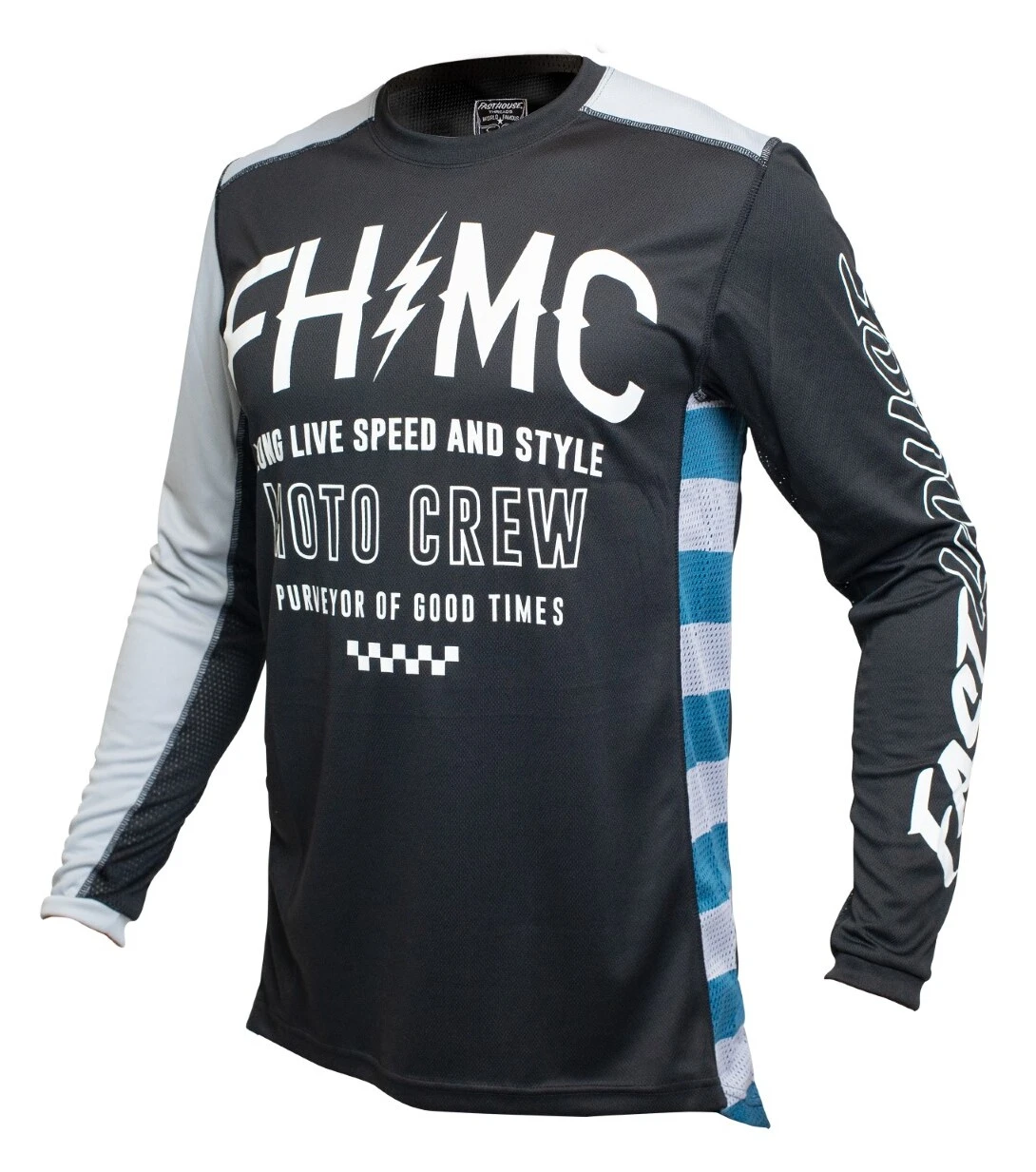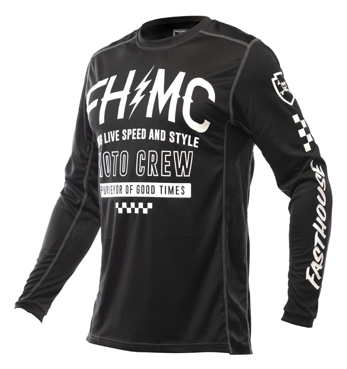 The Fasthouse Grindhouse Cypher Jersey is a race day essential for any serious rider. Dyed polyester ensures that colors stay vibrant while an over locked stitching pattern gives extra strength and durability. This keeps the jersey looking as good as the day it was delivered. Moisture wicking fabric keeps riders dry all race and high quality silk screening keeps the graphics on the jersey.Â