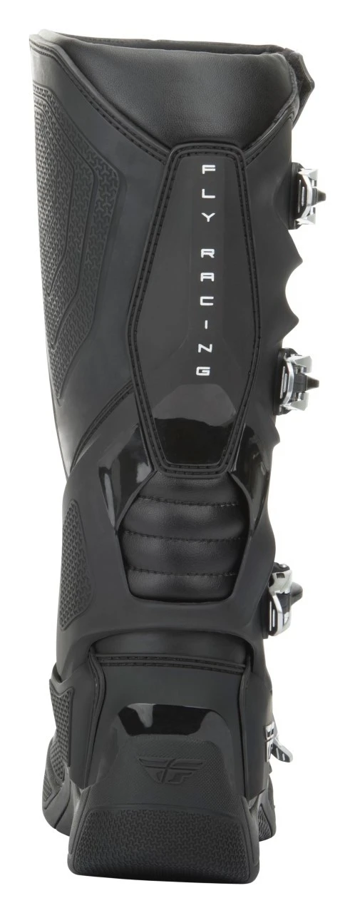 The Fly Racing Dirt FR5 Boots are the next step in protection from Fly Racing. The FR5 Boots provide full coverage thanks to the TPU (thermoplastic polyurethane) heel piece which connects lateral and medial TPU pieces, as well as the contoured TPU calf plate. Additionally, they employ a brand new 4-stage high-grip sole design that is ready to race your stiffest competition. Stage one is a perforated plush insole resting above the innovative second stage, an injected midsole with a unique fishbone design which is lightweight yet incredibly strong. The durable mid-sole is then further enhanced by the addition of a rigid in-mold flex reducing steel shank. Stage three is a fishbone foam layer designed to transfer shock and vibration which is then encased in the final stage, an anti-vibration molded traction sole.